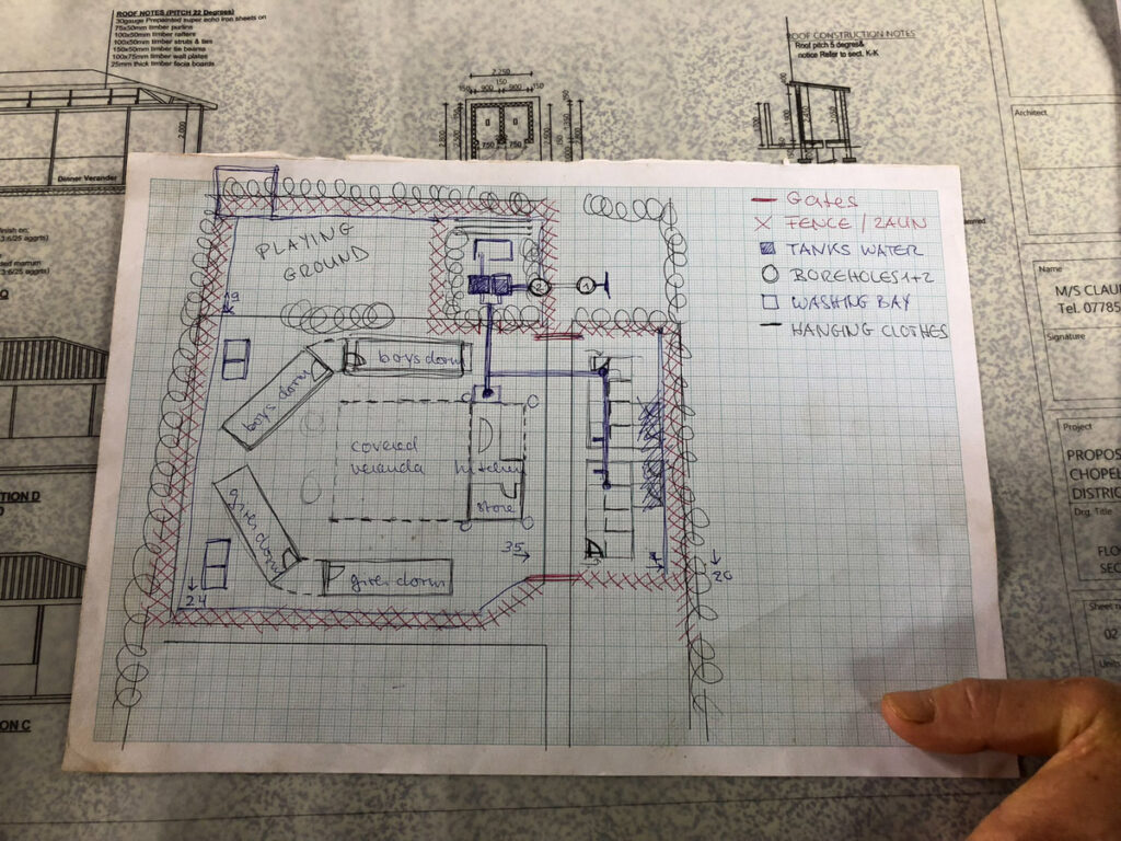 Wir möchten das Waisenhaus von 20 auf 40 Kinder ausbauen und dafür sind folgende Gebäude geplant: 4 Schlafhäuser à 10 Schlafplätze, Küche und gedeckter Gemeinschaftsplatz, Duschen- und Toiletten-Trakt sowie ein Spiel- und Sportplatz. Die Wasserversorgung wird durch einen Brunnen mit Tanks und Dieselpumpe sichergestellt und eine neue Solaranlage sorgt für den Strom. Die ganze Anlage muss von Gesetzes wegen umzäunt werden. Dank grosszügigen Spenden konnten wir im April 2018 mit dem Bau beginnen.